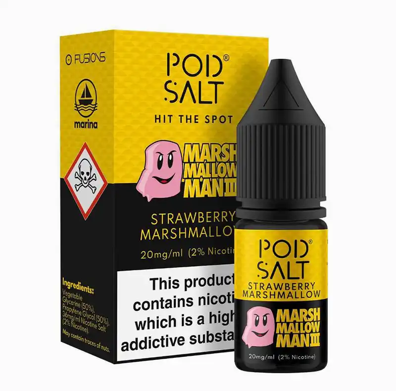 Pod Salt Strawberry Marshmallow با استفاده از نیکوتین سالت خالص ساخته شده است. این ترکیب باعث جذب سریع نیکوتین در بدن می‌شود و همان حس رضایت‌بخش سیگار را منتقل می‌کند. با این حال، ویپ حاصل از آن نرم و بدون سوزش گلو است و برای مصرف روزانه کاملاً مناسب خواهد بود.